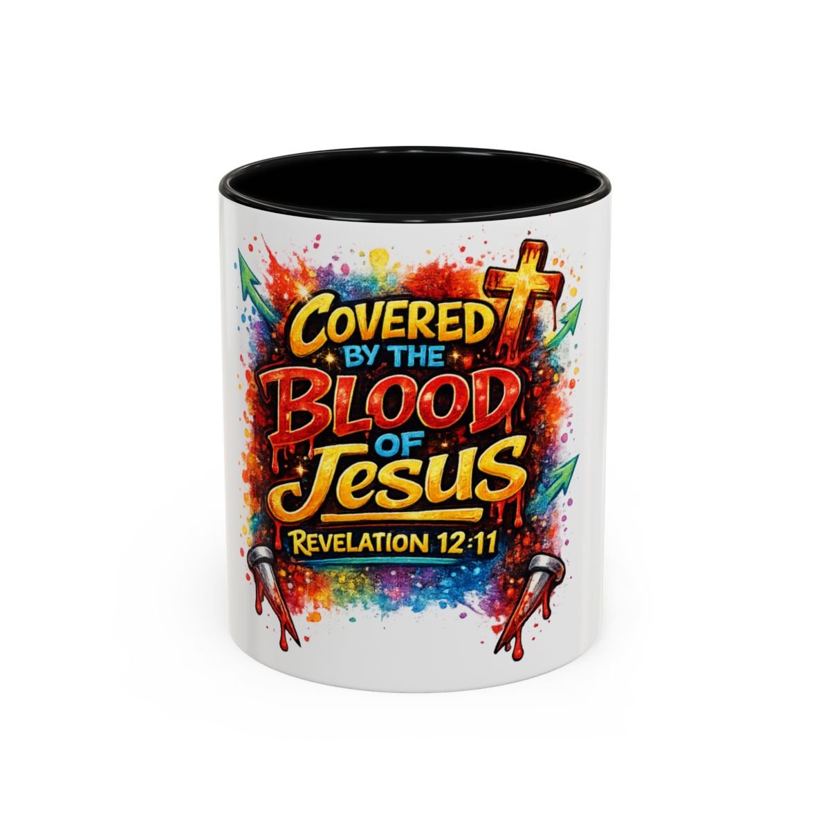 Start every day covered in faith and confidence. The Covered by the Blood of Jesus – Revelation 12:11 Mug features vibrant graffiti-style artwork that boldly declares victory, protection, and redemption through Christ.