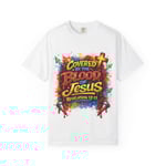 This T-shirt is more than apparel—it’s a declaration. The tee features vibrant, graffiti-style artwork that boldly proclaims faith, victory, and protection through Christ.