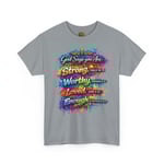 Bold faith meets vibrant street art in the God Says You Are™ Graffiti Collection—a powerful reminder of identity, strength, and divine love. This eye-catching design features colorful graffiti lettering layered with paint splashes and scripture affirmations inspired by God’s promises: