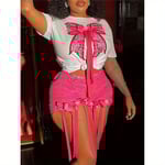 Dollhouse Drip Set is a bold statement outfit designed to turn heads and own the room. Featuring a fitted white top with an oversized lace bow detail and high-waisted black lace shorts accented with dramatic ribbon ties, this look blends coquette charm with confident, grown-woman energy.