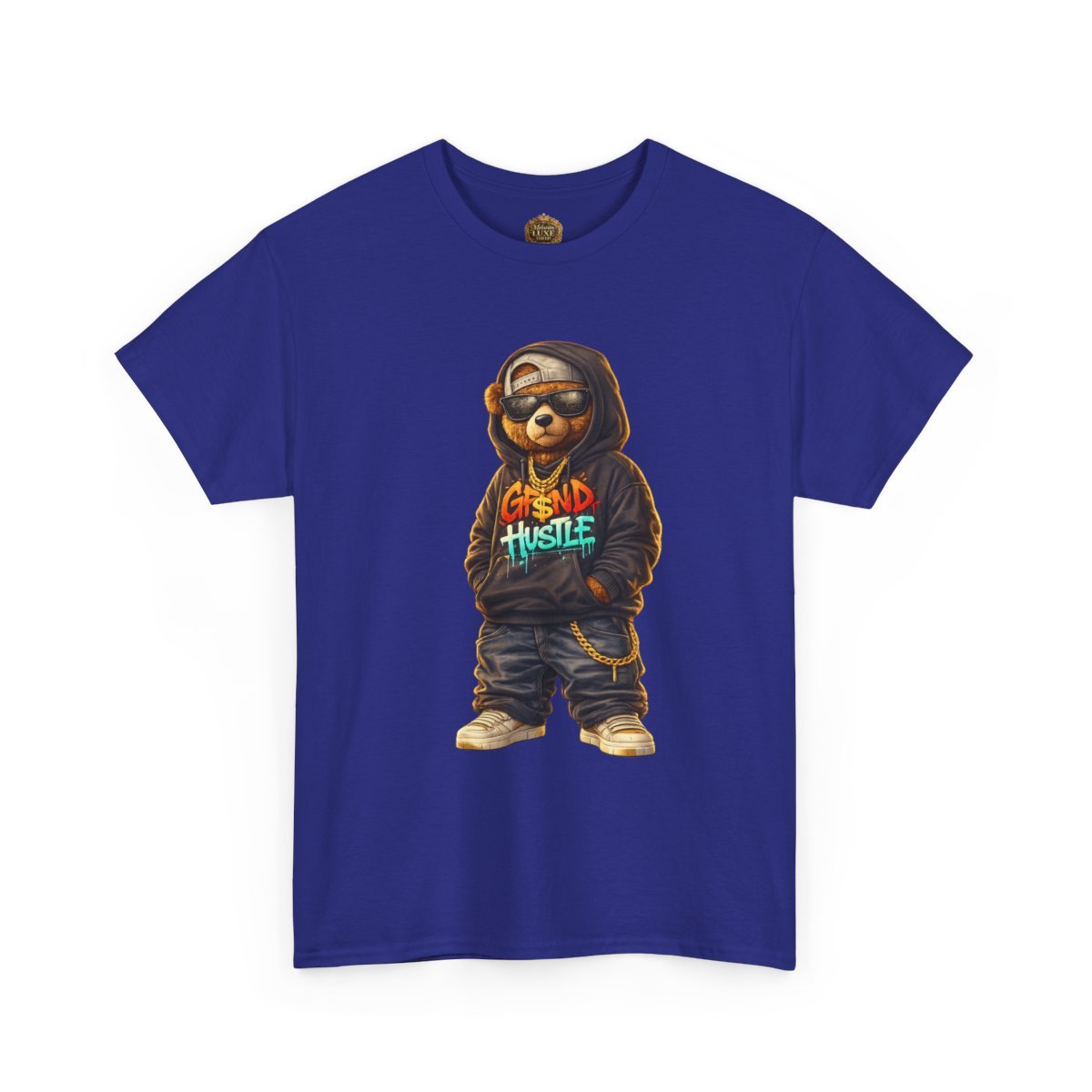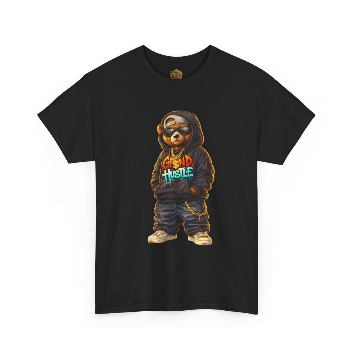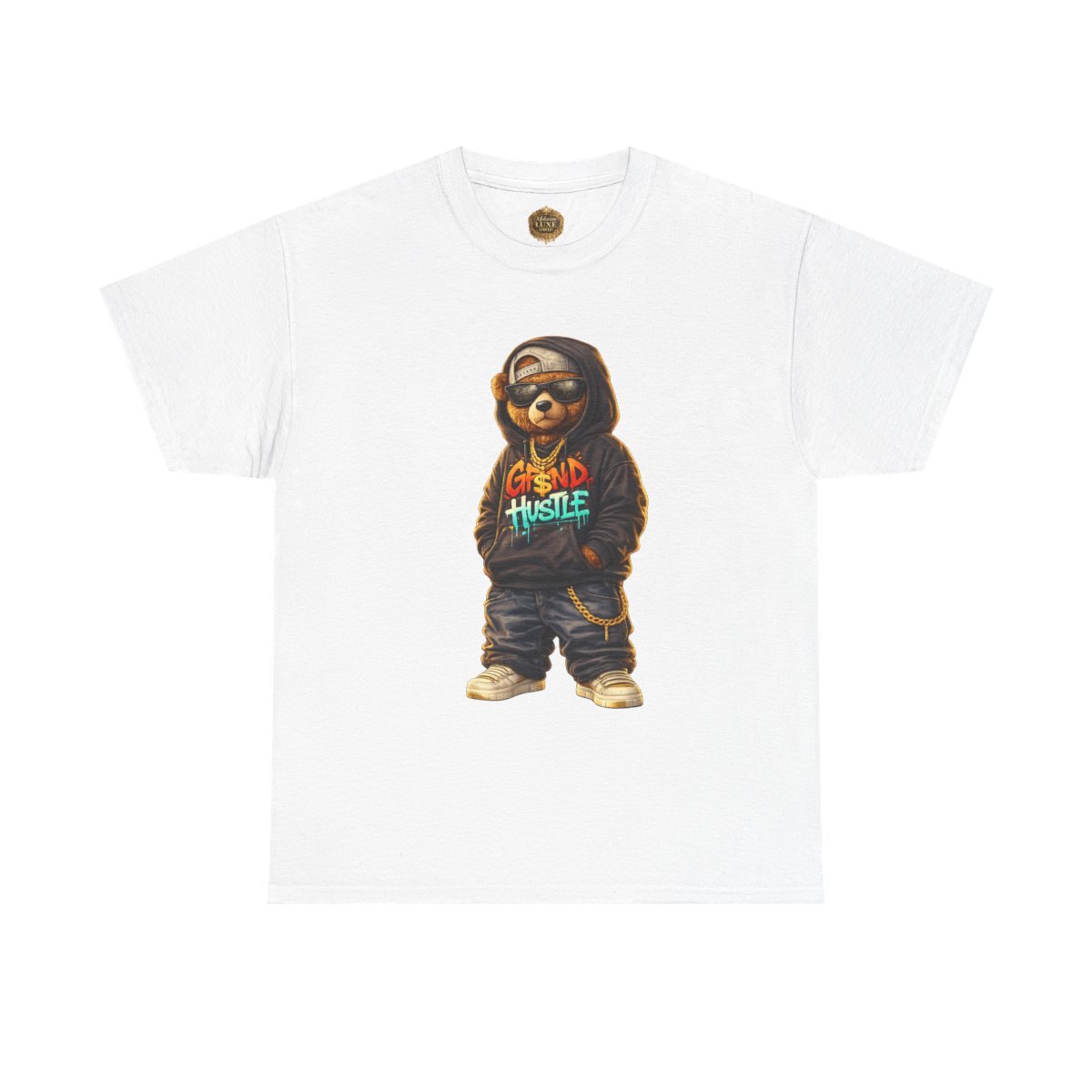 The Grind Hustle™ Street Bear Graphic embodies discipline, ambition, and street-smart confidence. Featuring an urban teddy bear rocking an oversized hoodie with graffiti-style lettering, baggy jeans, dark shades, and gold chains, this design is all about hustle-first energy.