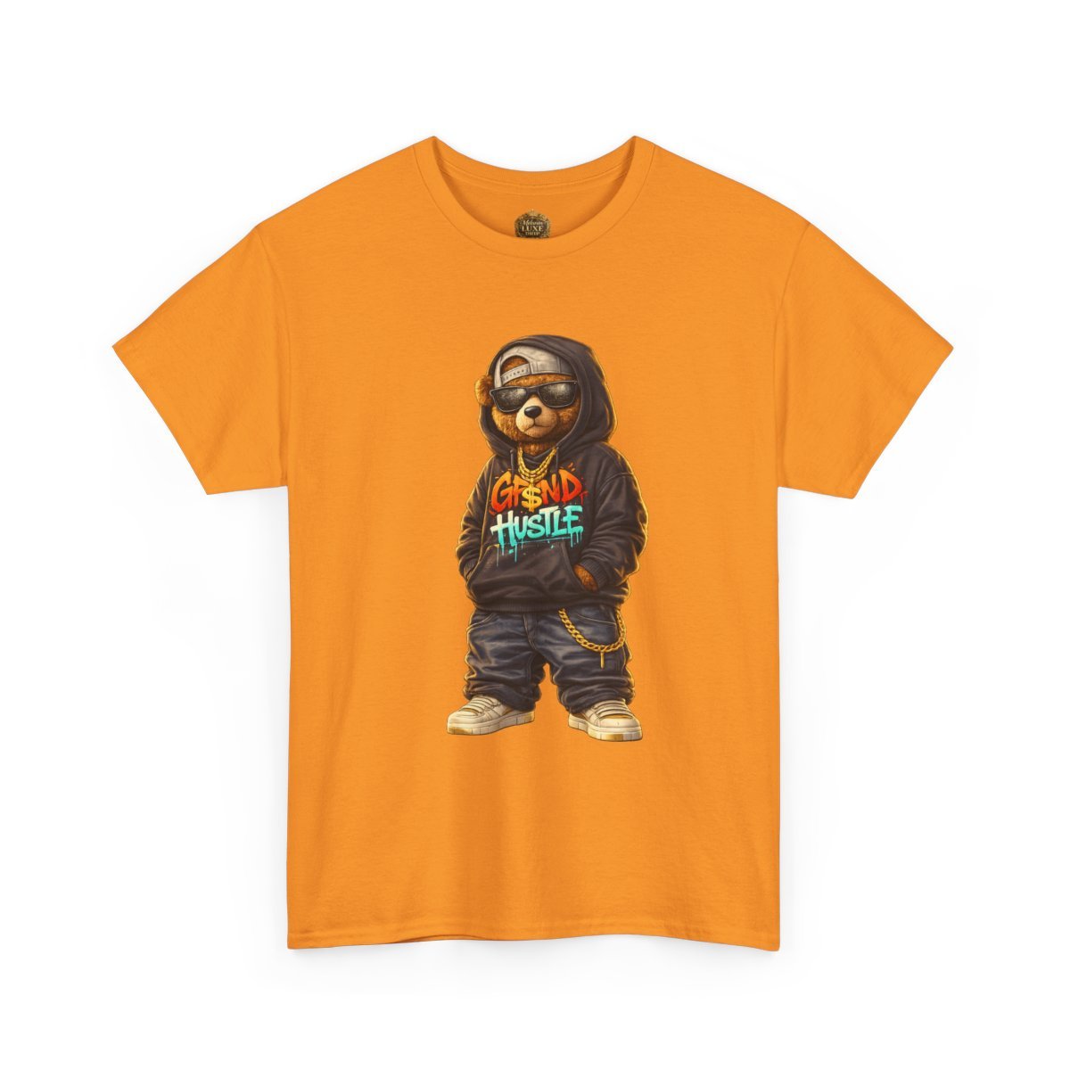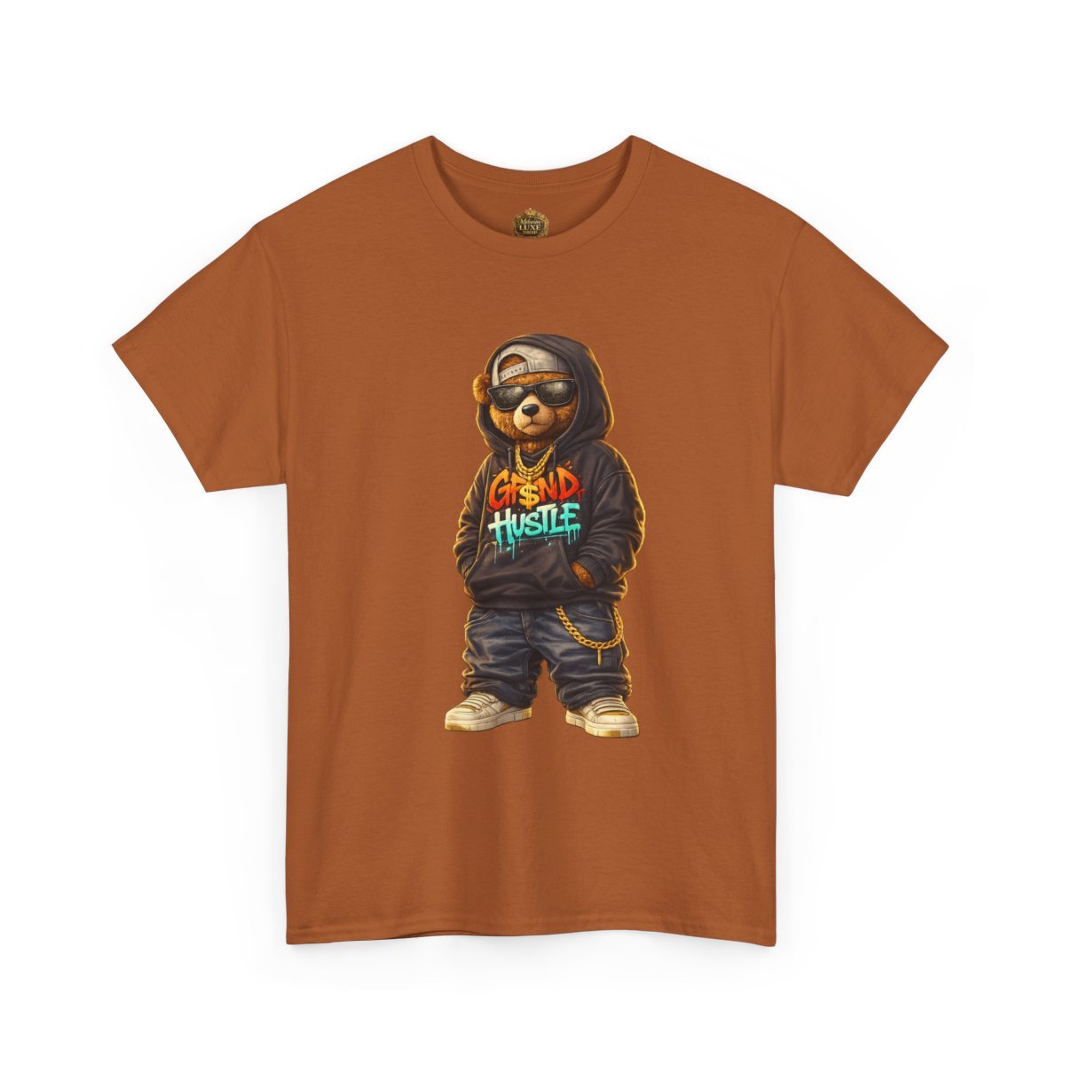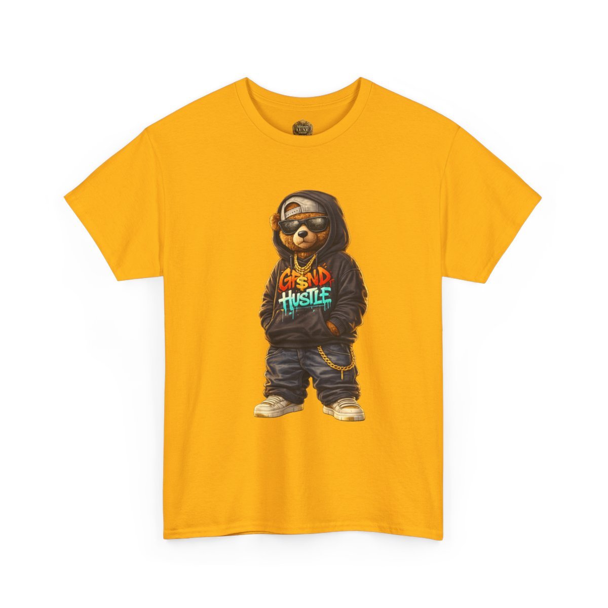 The Grind Hustle™ Street Bear Graphic embodies discipline, ambition, and street-smart confidence. Featuring an urban teddy bear rocking an oversized hoodie with graffiti-style lettering, baggy jeans, dark shades, and gold chains, this design is all about hustle-first energy.