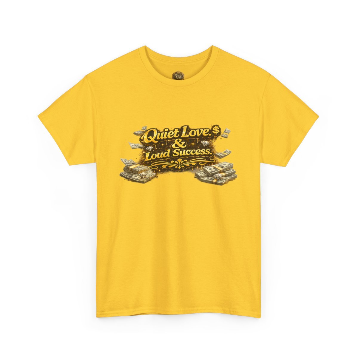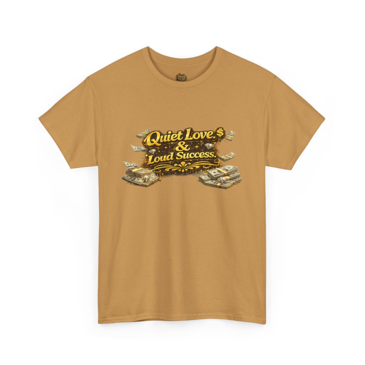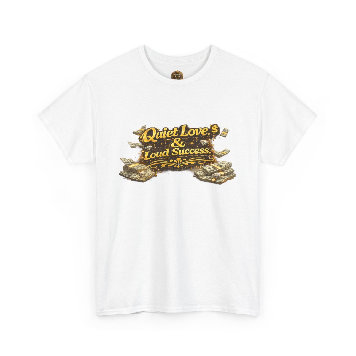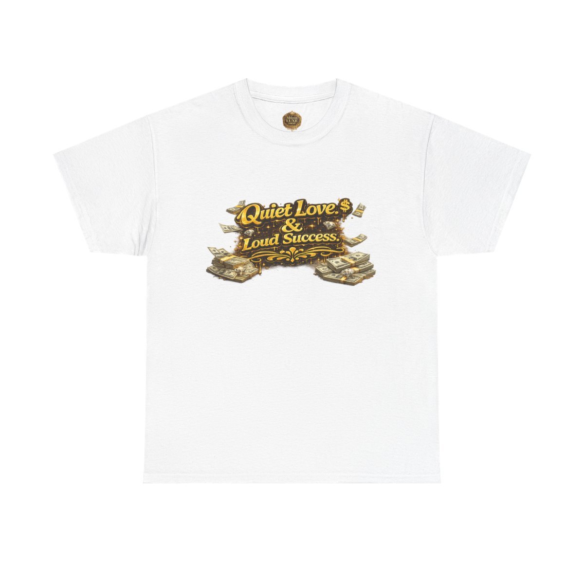 This statement tee is for those who keep their circle small and their wins undeniable. Featuring bold 3D gold lettering paired with money-stack accents, Quiet Love. Loud Success represents loyalty, focus, and success that doesn’t need an announcement.