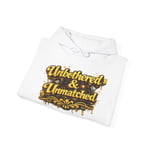 This hoodie is for those who don’t explain their success—they wear it. Featuring bold, 3D gold Unbothered & Unmatched lettering with a luxury street-style finish, this piece speaks confidence before you say a word.