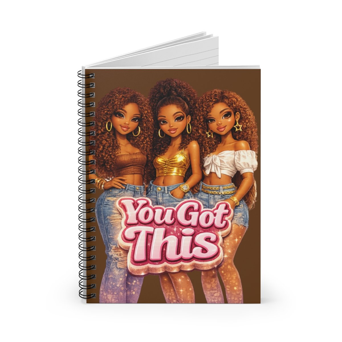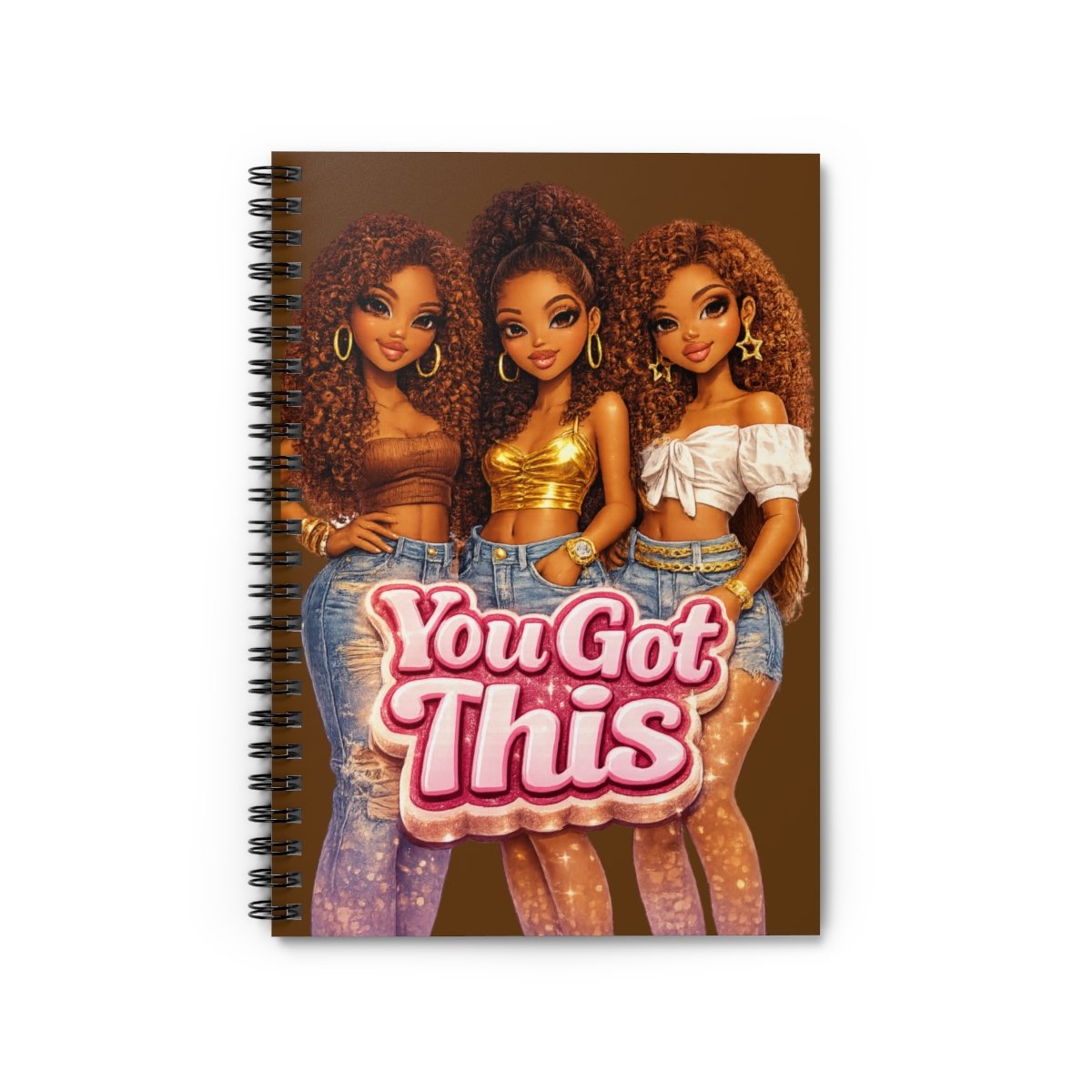Step into confidence, clarity, and consistency with the You Got This – Empowered Queens Journal. Featuring three beautifully illustrated women with rich brown skin tones and bold kinky-curly hair, this journal is designed to remind you—every single day—that you are capable, resilient, and unstoppable.