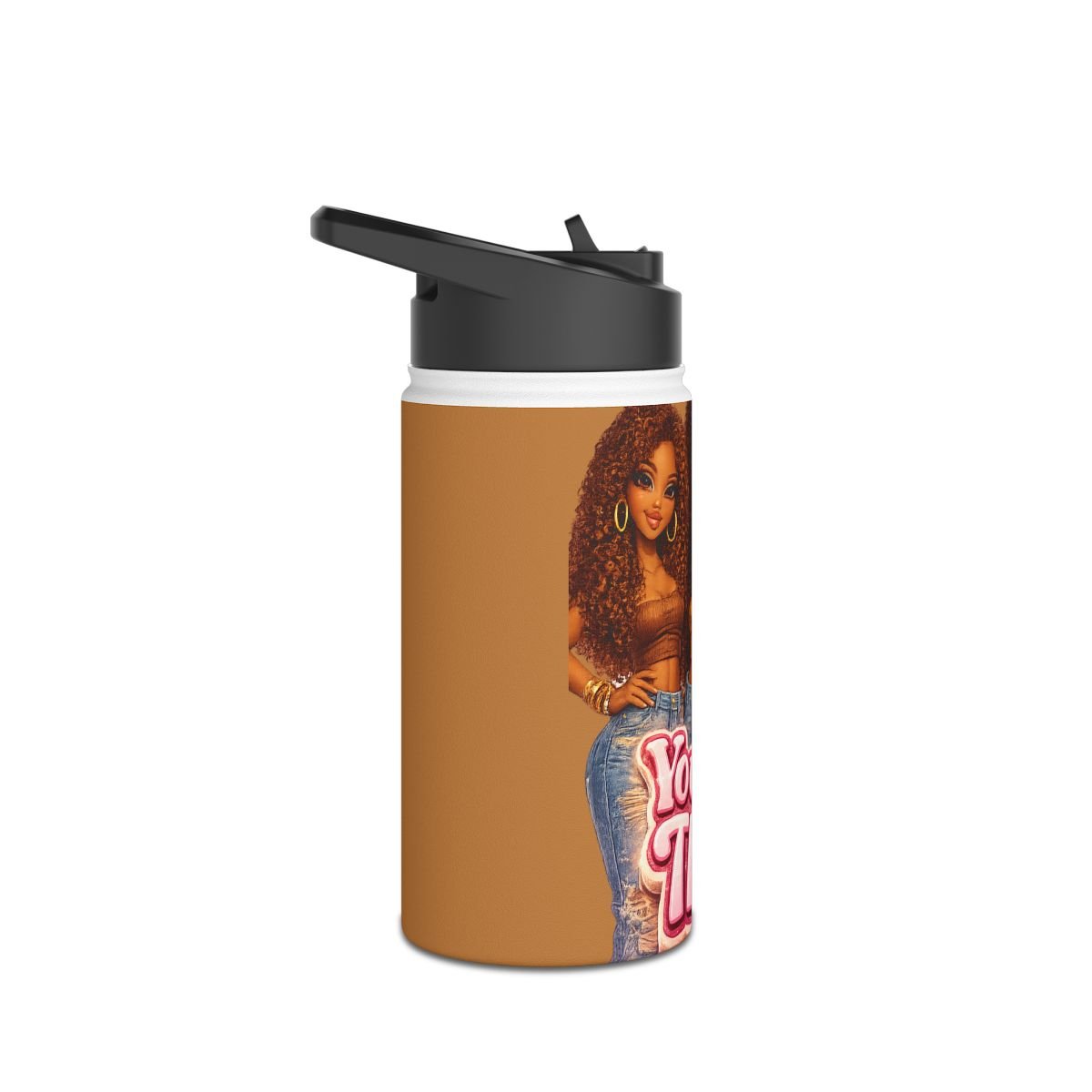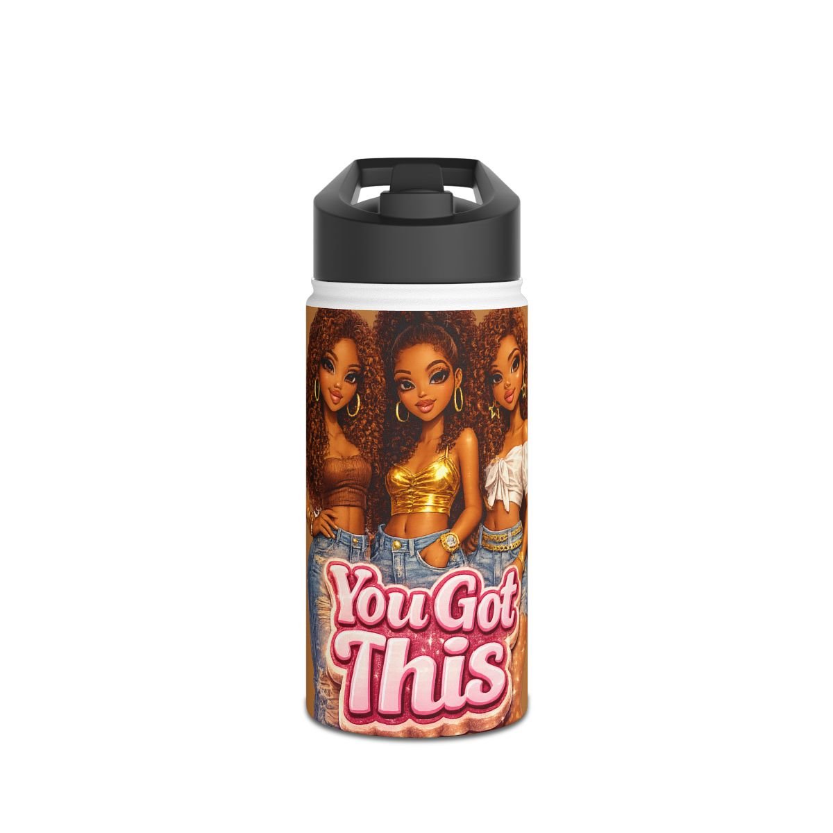 Featuring three confident women with natural kinky-curly hair and radiant brown skin tones, this tumbler is a daily reminder to stay focused, stay hydrated, and stay powerful.